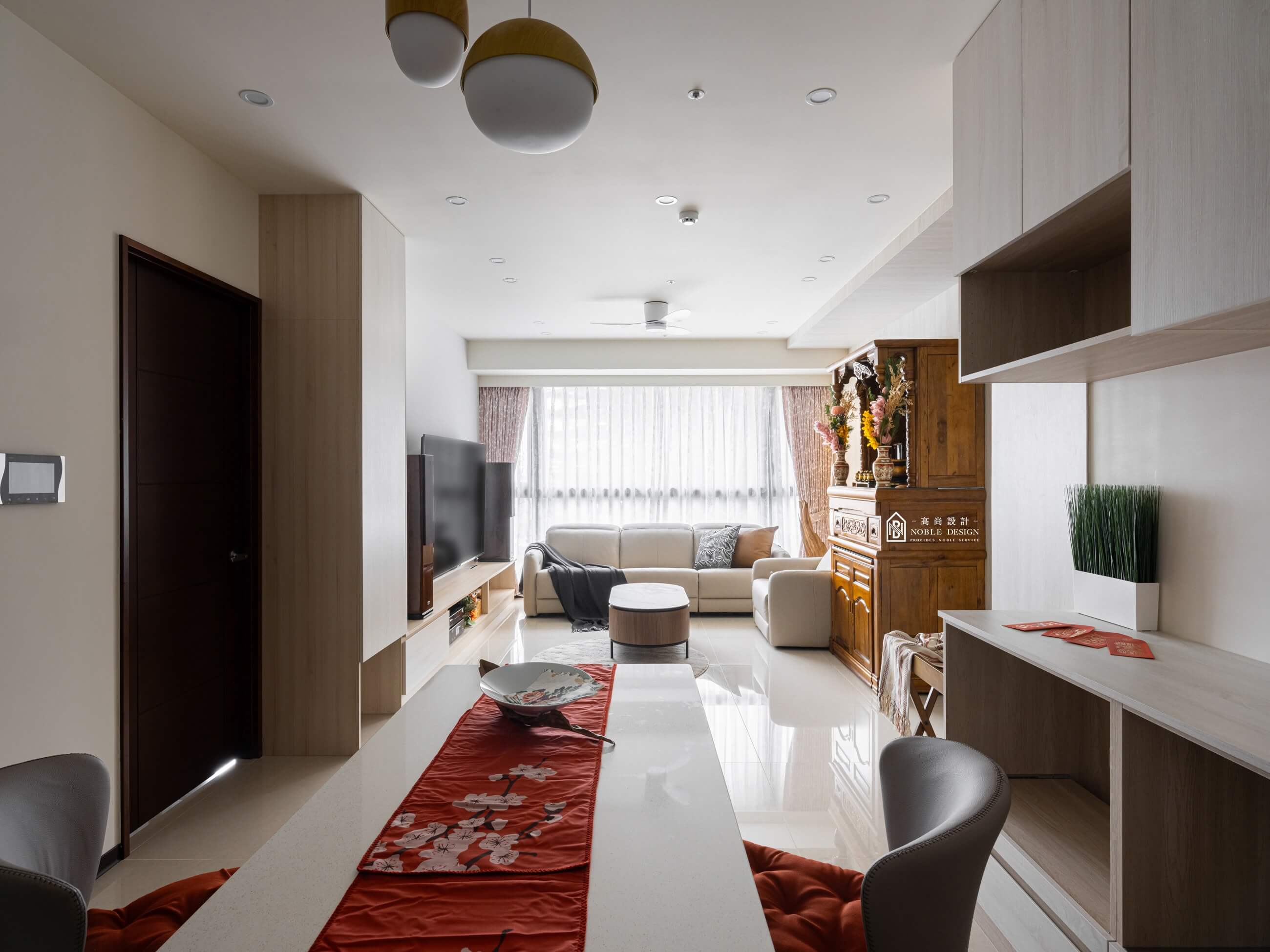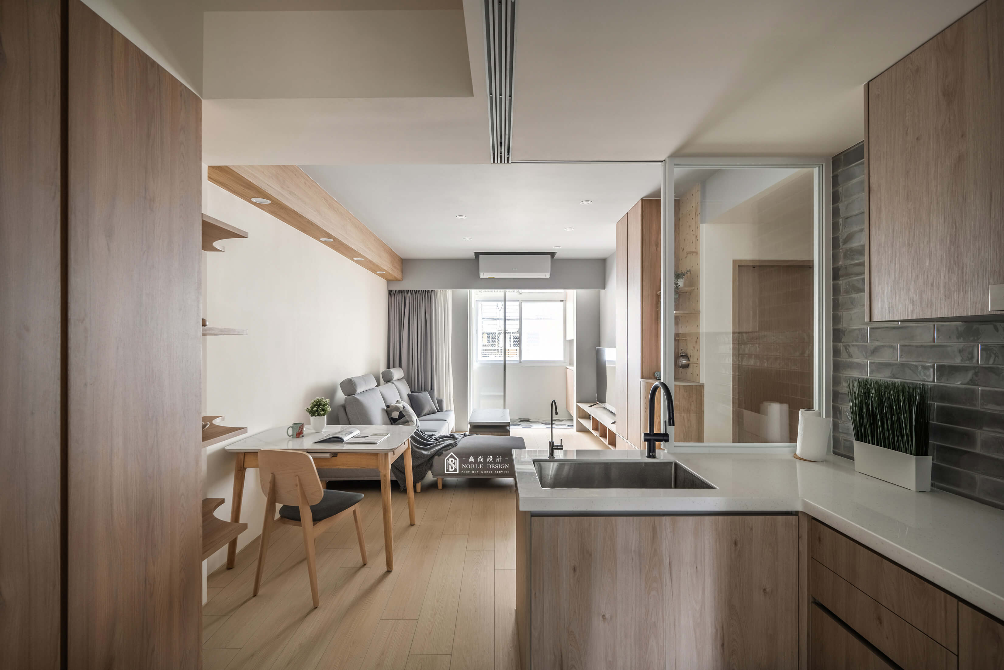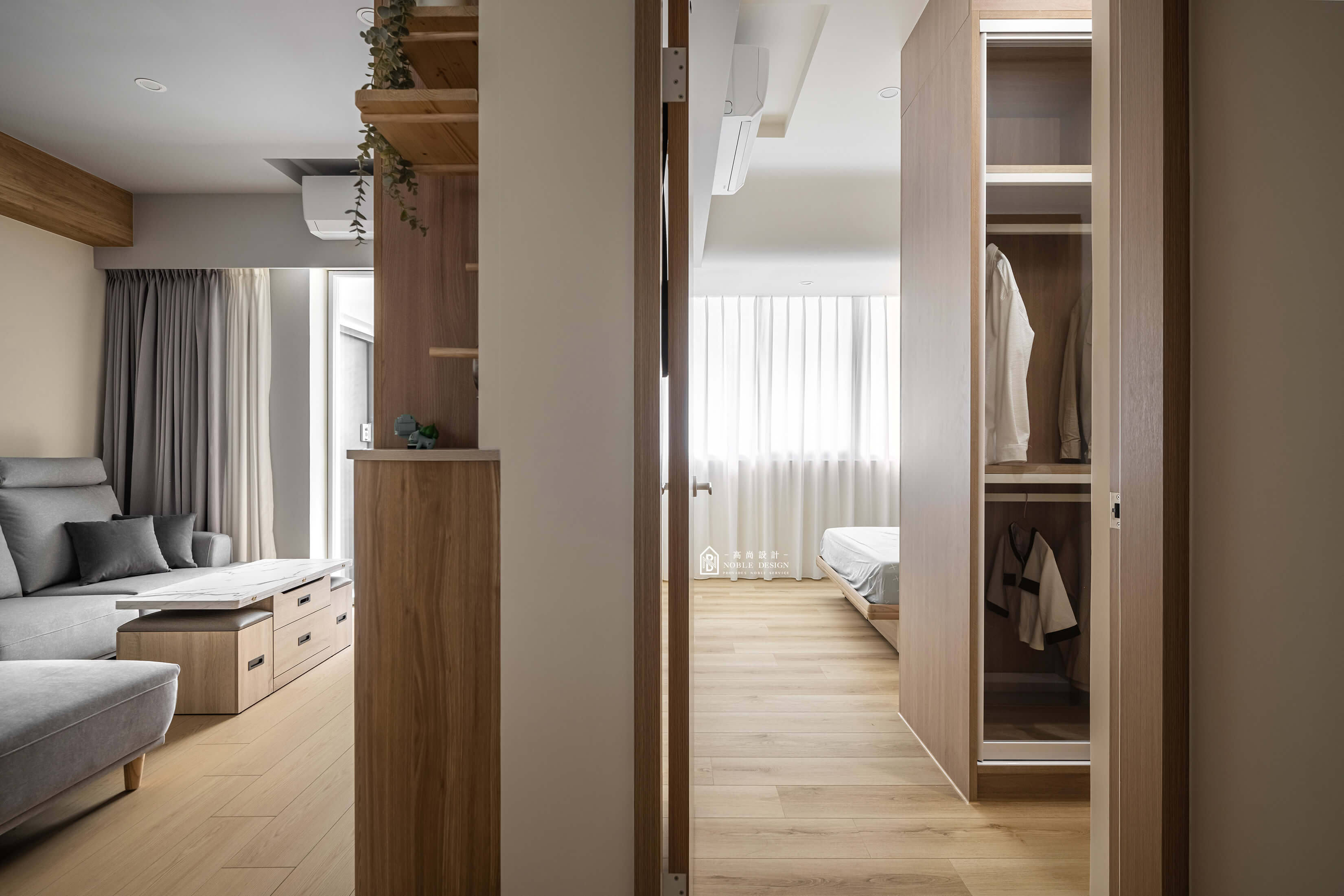 原木色家具與格柵,展現自然木質的溫暖與細膩
